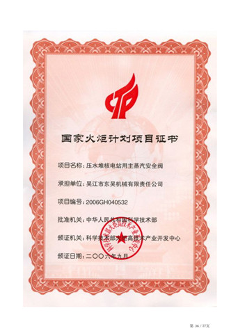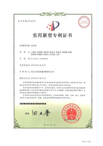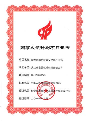東吳機(jī)械是國(guó)家級(jí)高新技術(shù)企業(yè),一向注重新產(chǎn)品的開發(fā),公司的安全閥產(chǎn)品已經(jīng)獲得32項(xiàng)專利證書,2項(xiàng)產(chǎn)品被列入國(guó)家級(jí)火炬計(jì)劃項(xiàng)目,7項(xiàng)產(chǎn)品被評(píng)定為國(guó)家級(jí)高新技術(shù)產(chǎn)品
